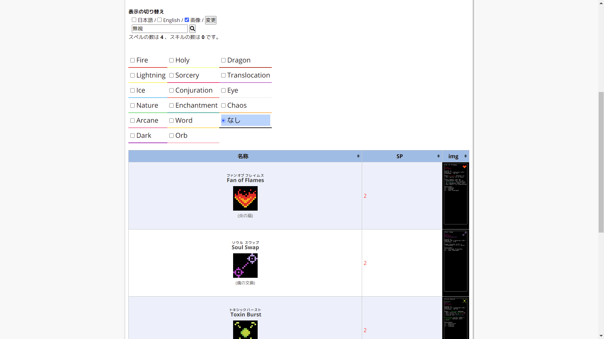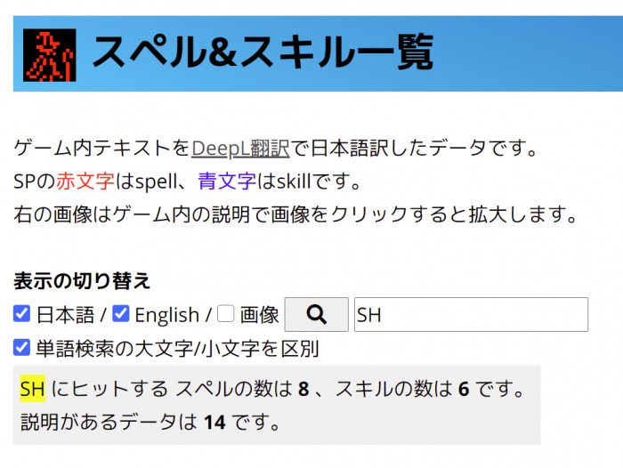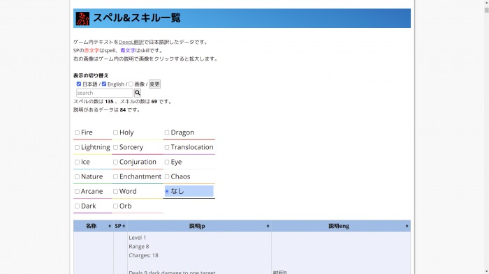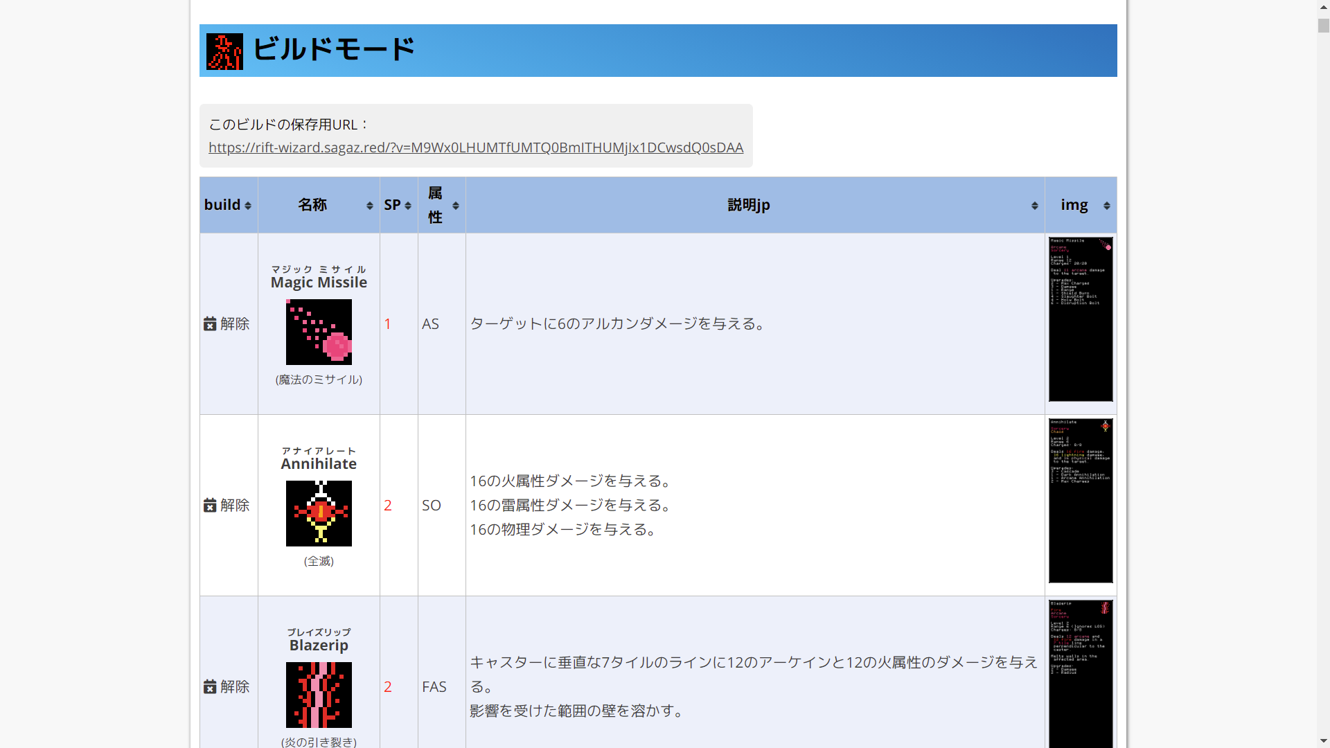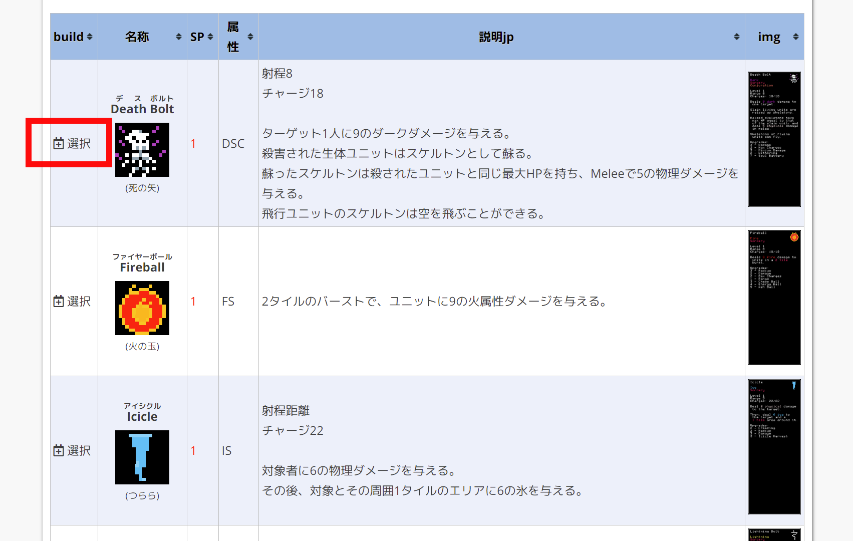 スペル・スキル一覧の中から好きなものを選ぶことでビルド一覧が作れるようになりました。