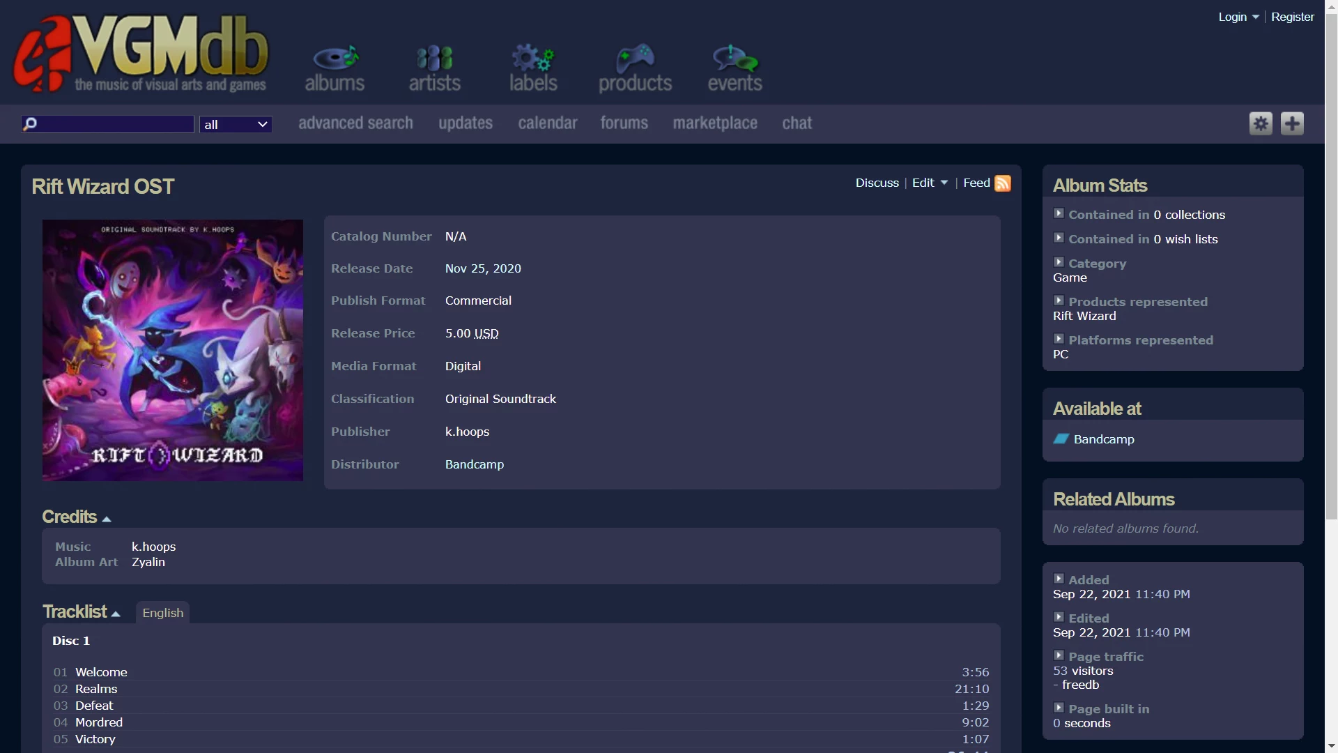Rift Wizard のサントラもリリースされていて購入できるようですね。