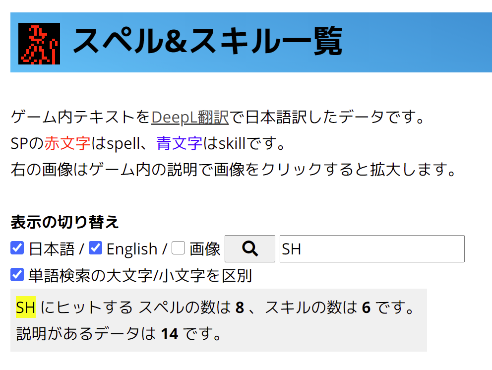 チェックを入れて検索すればシールドの説明の「SH」のみヒットさせることができます。