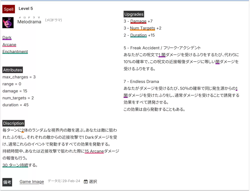 アップグレードすると、ダメージ以外の全てのステータス値(attr)も同様に上乗せされるようになります。