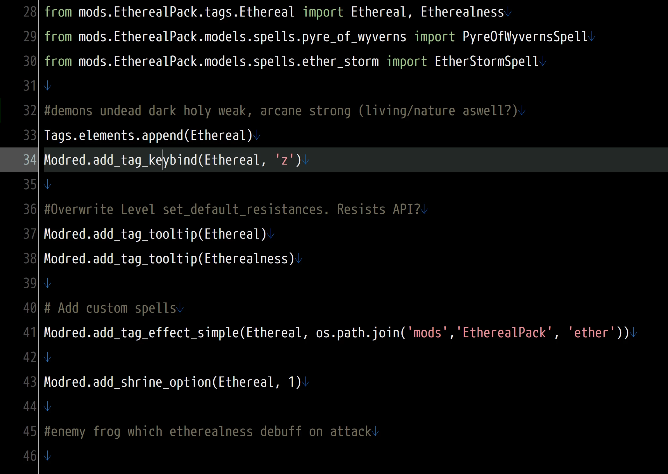EtherealPack.pyの "add_tag_keybind(Ethereal, 'Ä') "を置き換えてみてください)