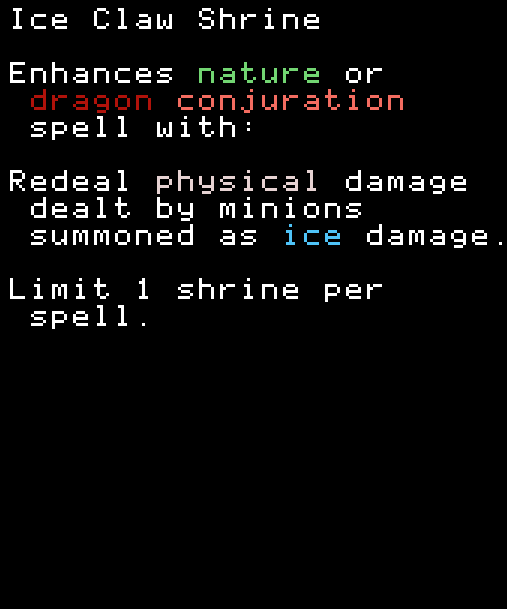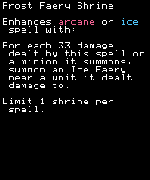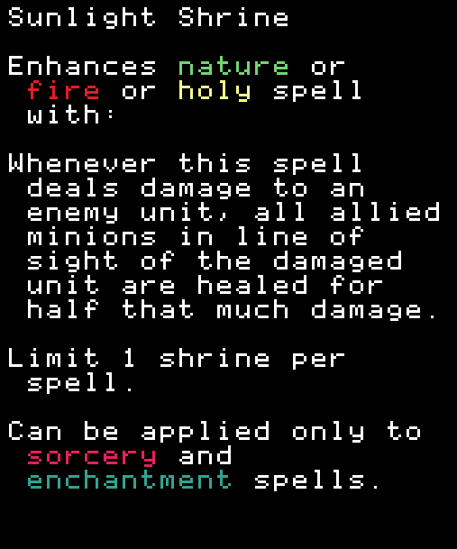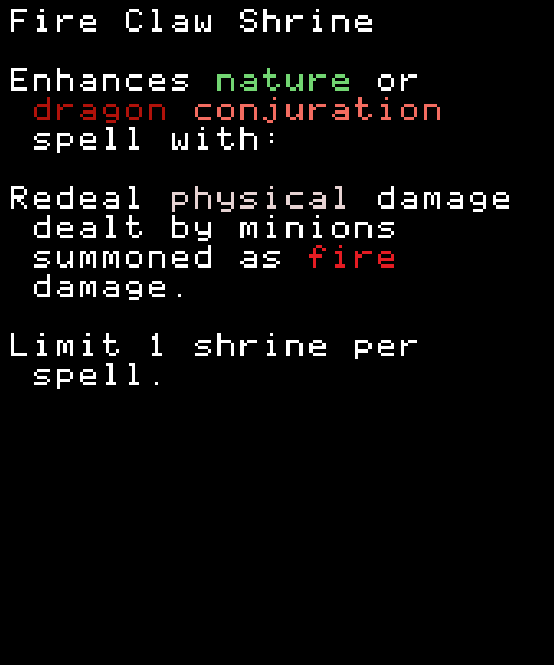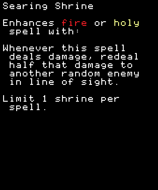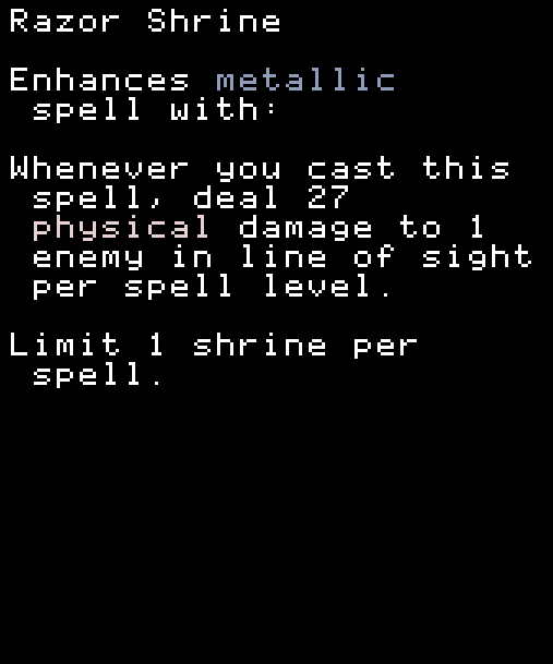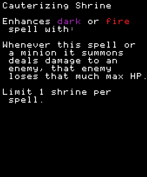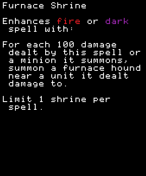 ※どのスペルにも付けられるがミニオンのステータスがないと意味がない。FireballにこのShrineを付けてFlameGateを使ってもミニオンのHPは上がらない。FlameGateにShrineを付ければミニオンのHPは上がる。 COMMON
