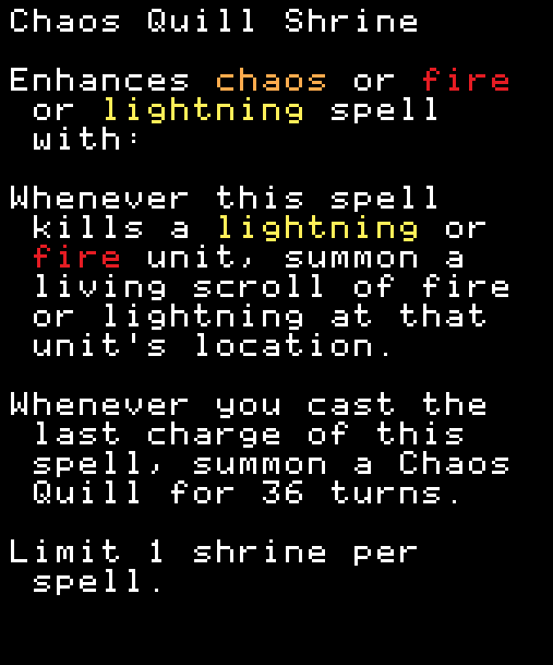 この呪文のラストチャージを行うたび、36ターンの間、Chaos Quillを召喚する。