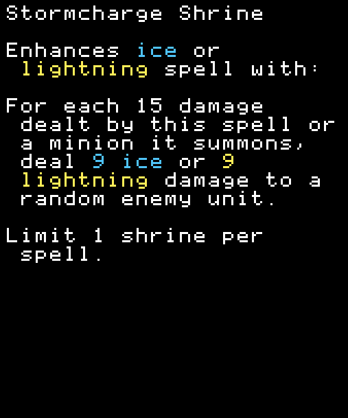 この呪文またはその召喚したミニオンが与えた15ダメージごとに、ランダムな敵ユニットに9の氷または9の雷ダメージを与える。 RARE